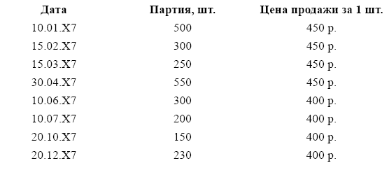 По состоянию на 01.01.Х7 у компании «Эта» на складе было 1000 чайников, стоимостью 300 рублей каждый. В течение года были совершены следующие операции: