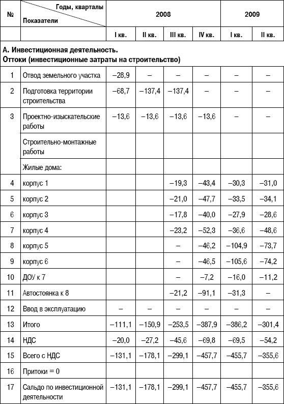 Таблица 8.7. Расчет денежных потоков по проекту застройки, млн руб.