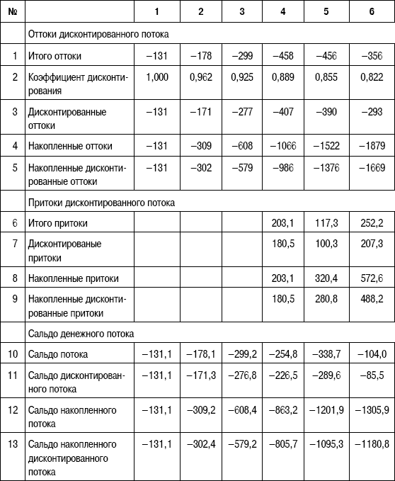 Таблица 8.9. Расчет дисконтированного денежного потока по китайской методике, млн руб.
