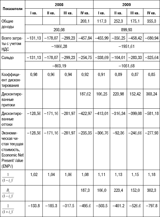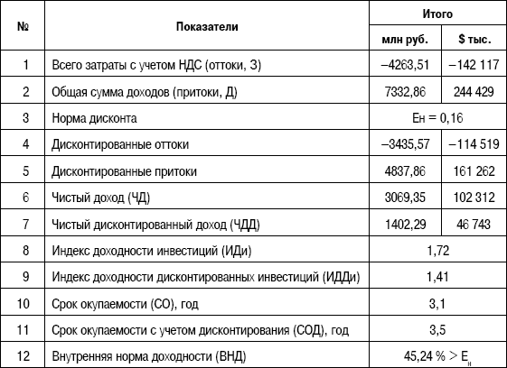 Таблица 8.10. Итоговые показатели эффективности проекта по российской методике