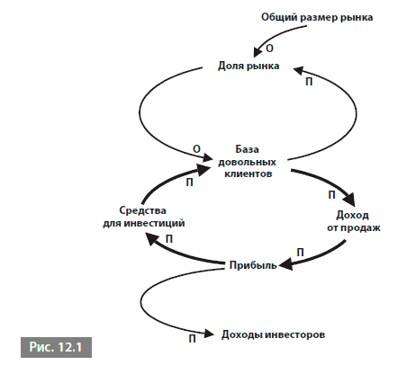На рис. 12.1 изображена диаграмма цикличной причинности двигателя роста бизнеса, которую мы рассматривали в главе 8.