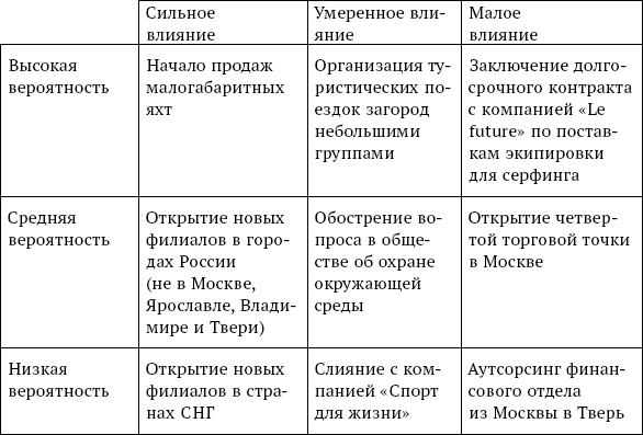 Рис. 17. Матрица возможностей для магазина «Веселый турист»