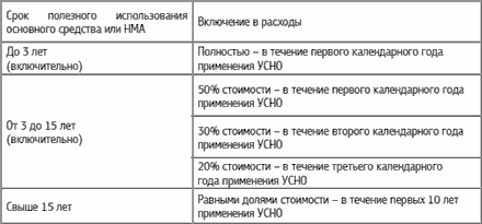 Порядок включения в расходы остаточной стоимости основных средств и НМА, «переводимых» с общей системы налогообложения на упрощенную, зависит от срока полезного использования такого имущества (пп. 3 п. 3 ст. 346.16 НК РФ).