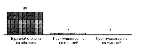 Рис. 3.22. Результаты ответа респондентов на вопрос «На аудиторию какого пола преимущественно направлено содержание Вашего СМИ?», %