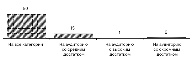 Такие же «приблизительные представления» и о достатке целевой аудитории. Подавляющее большинство сотрудников холдинга искренне полагают, что их контент направлен на аудиторию с разным уровнем достатка (рис. 3.25).