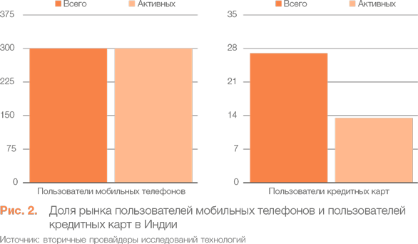 Диаграммы показывают долю рынка пользователей мобильных телефонов и пользователей мобильных карт, а также процент активных пользователей в каждом сегменте в Индии. Интересно то, что доля рынка мобильных устройств и их использование находятся на одном уровне для большинства развивающихся экономик. Это значит, что технологии, которые привлекают платежи через мобильные устройства, показали себя более успешными в развивающихся экономиках. Но, чтобы достичь финальной цели при переходе в мир безналичных денег или кредитных карт, нам также нужно сдвинуть фокус с преимуществ клиента на преимущества коммерсанта, потому что мелкие продавцы поднимаются на борт не ради комиссий за операцию. Пока мелкие коммерсанты не перейдут на Apple Pay, обычные люди будут использовать альтернативные способы оплаты. Apple нужно разработать средства поощрения мелких коммерсантов, чтобы обеспечить повсеместное внедрение Apple Pay. Если я уже пользуюсь Apple Pay, то мне бы хотелось иметь дело с этой системой и в своем бакалейном магазине, а также в фастфуде на углу, с его хот-догами и бургерами. Список сценариев бесконечен.