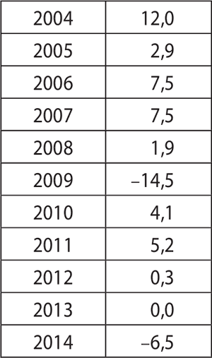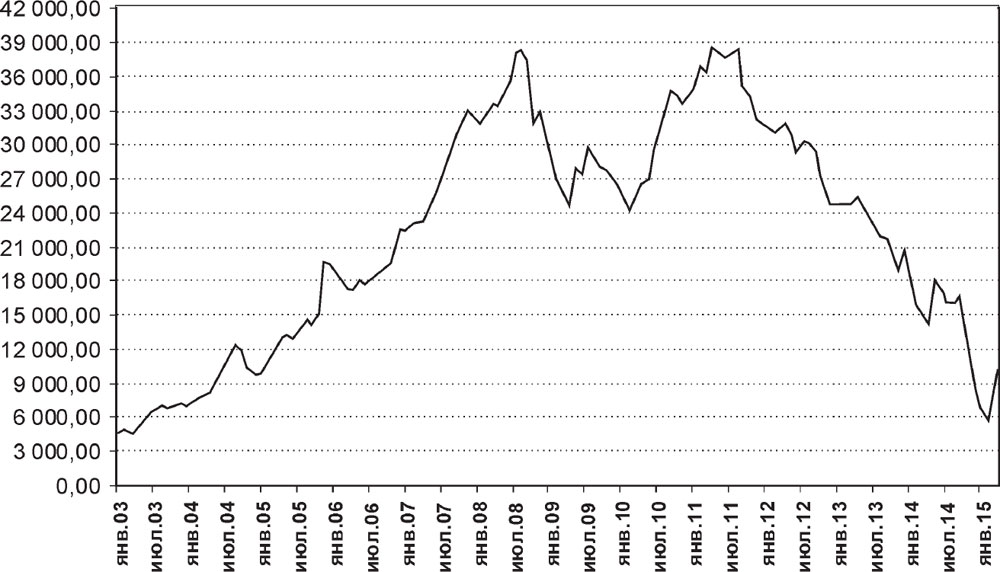 Мы видим, что оптимистичный сценарий развития до 2007 года сменился глубоким спадом, практически нивелировавшим предыдущий рост.