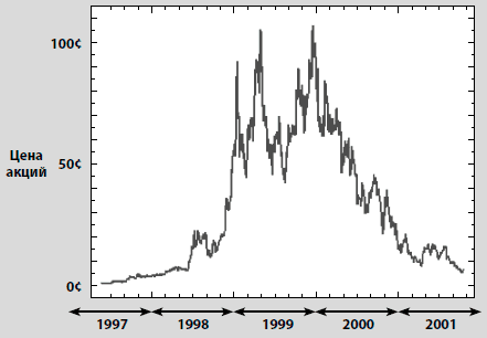 Ниже приведен график изменения стоимости акций на NASDAQ компании Amazon.com, самой успешной из нового поколения интернет-компаний за период с 1997 по 2001 г.