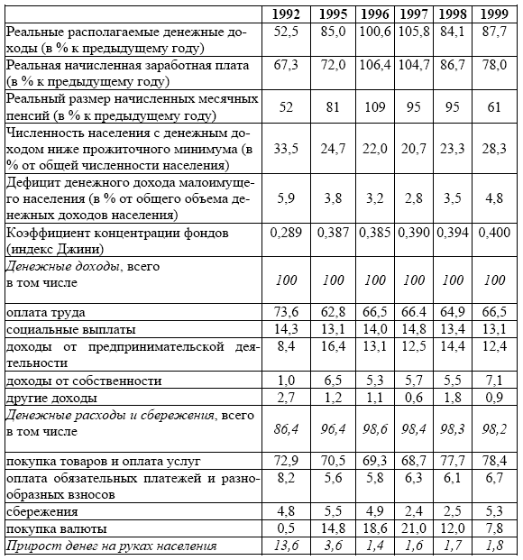 Структура доходов населения также претерпела изменения. Несмотря но то, что основным источником дохода по-прежнему являлась зарплата, ее значимость в контексте источников финансовых ресурсов понижалась. Она перестала быть единственным значимым источником, а во многих случаях стала замещаться другими. Это произошло, в том числе, из-за трансформации трудовых и финансовых отношений. Стали расширяться источники доходов, т. к. формировалась на новых основаниях финансовая сфера, расширялась предпринимательская деятельность.