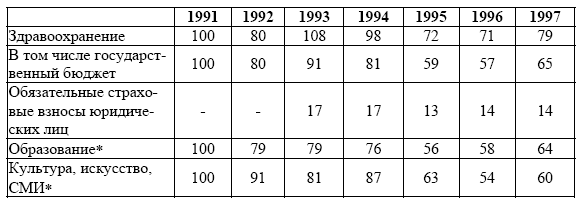 Параллельно наблюдается существенное снижение прямых государственных расходов на социально-культурную сферу (см. табл. 5), в среднем за исследуемый период – на 35 % [68, с. 75]. Все это привело фактически деградации социальной сферы и сокращению уровня потребления социальных услуг.