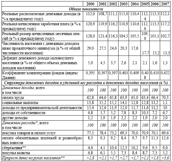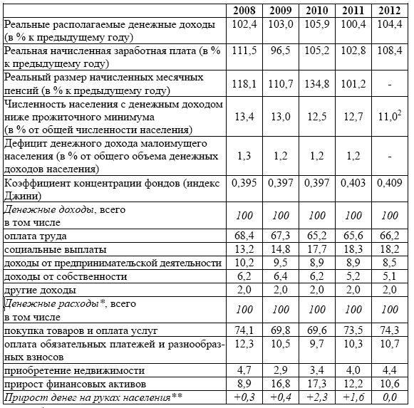 Так, росли располагаемые денежные доходы (в реальном выражении), номинальная и реальная заработная плата, абсолютные значения сбережений, в структуре доходов стабилизировалась доля оплаты труда, наметилась тенденция к сокращению количества лиц, имеющих доход ниже прожиточного минимума. Неоднозначна оценка своего финансового положения самими домохозяйствами.