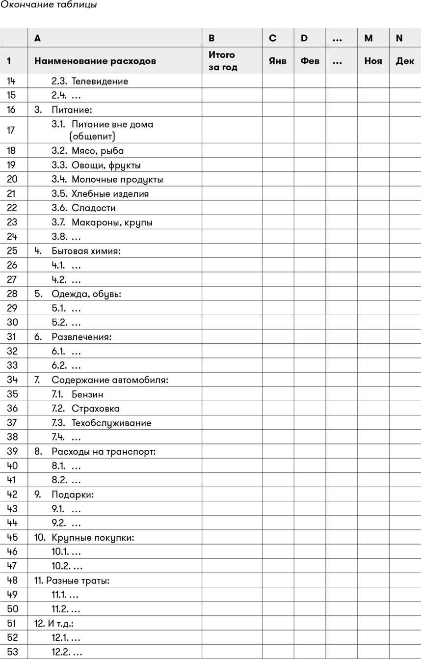 Работая с такой таблицей, вы узнаете про себя многое, на что раньше не обращали внимание. Она станет финансовым отражением вашей жизни. Вы увидите в ней деньги, которые были у вас в руках, но ушли сквозь пальцы. Получите ответ на вопрос, который наверняка не раз себе задавали: «Куда деваются деньги?».