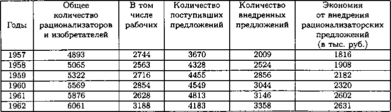 Об общей картине рационализаторской и изобретательской деятельности на заводе можно судить по приводимой таблице.