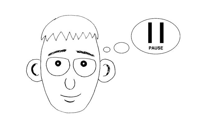 А теперь разом застыньте во времени!.. Пусть мысли резко остановятся, как будто вы нажали на ментальную кнопку «пауза».