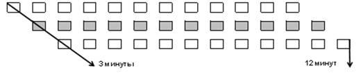 В случае прохождения по потоку единичных изделий 1 (А) + 1 (А,В) + 1 (А,В,С) + 1 (А,В,С) + 1 (А,В,С) + 1 (А,В,С) + 1 (А,В,С) + 1 (А,В,С) + 1 (А,В,С) + 1 (А,В,С) + 1 (В,С) + 1 (С) = 12 минут.