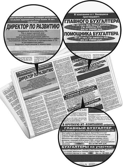 Вы не поверите, но в качестве примера я взял первую попавшуюся на глаза газету с вакансиями и открыл ее на странице «Управленческий персонал». На рис. 10.1 как раз и показана эта страница.