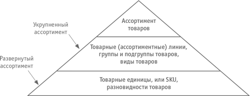 Но прежде чем анализировать работу с товаром, давайте определимся с терминами. В русском языке ассортиментом принято называть товары, относящиеся как к одной, так и к разным товарным группам. Торговый ассортимент – это все товары, представленные в торговой сети. Владимир Зотов в книге «Ассортиментная политика фирмы»[8] приводит товарную пирамиду, которую я использовала в своей работе.