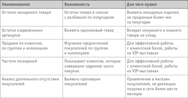 • периодичность пополнения товарного запаса по коллекциям, оценить его и грамотно управлять ассортиментом магазина.