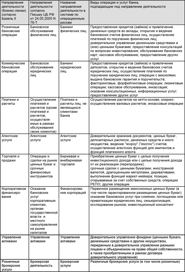 Настоящий список соотносится с Приложением 6 Базель II.