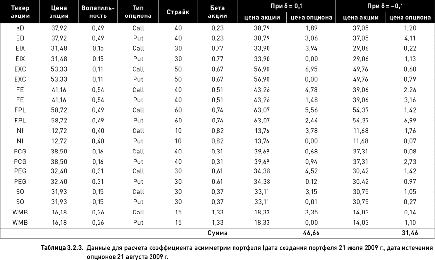 В таблице 3.2.4 приведен пример двух итераций для портфеля, использованного ранее в таблице 3.2.3. Цены акций генерировались, используя логнормальное распределение с волатильностью, равной исторической волатильности, рассчитанной на периоде 120 торговых дней. При моделировании учитывались взаимные корреляции цен акций, рассчитанные на том же историческом периоде. Первая итерация для акции EIX сгенерировала цену $31,04, что подразумевает прибыль в размере $0,70 (30 + 1,74 – 31,04), зато вторая итерация для этой же акции дала убыток в размере $1,28. Для портфеля в целом первая итерация оказалась убыточной, а вторая – прибыльной (таблица 3.2.4).