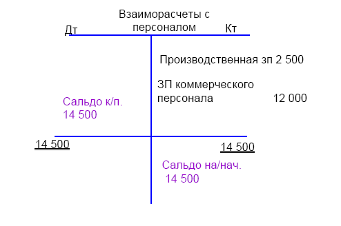 Дт «Заработная плата коммерческого персонала» Кт «Взаиморасчеты с персоналом» 12 000