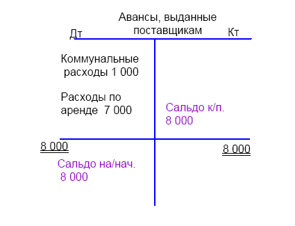 Дт «Авансы, выданные поставщикам» Кт «Коммунальные расходы» 1 000;