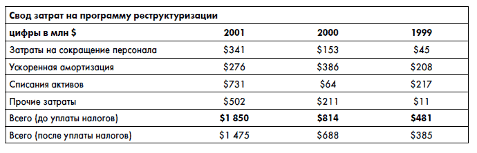 Прочие затраты включали в себя издержки на перевод сотрудников в другие подразделения, обучение, создание глобальных сервисных подразделений, новой юридической и организационной структуры, а также закрытие некоторых проектов в рамках реализации Organization 2005.