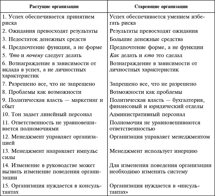 Характерные черты растущей и стареющей организации