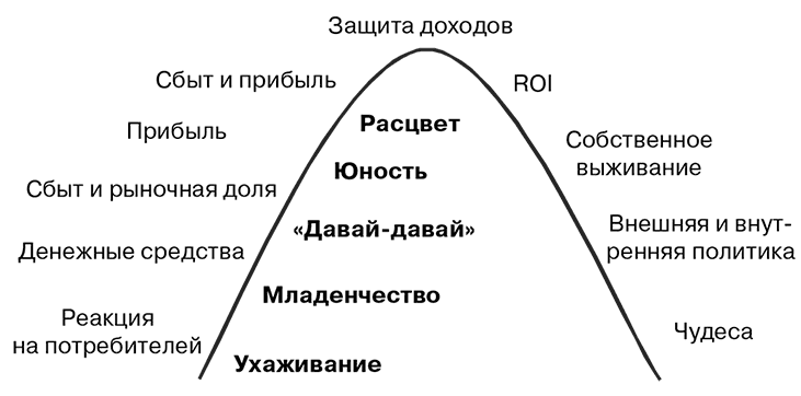 Рис. 7. Изменение целей организации по мере продвижения по жизненному циклу