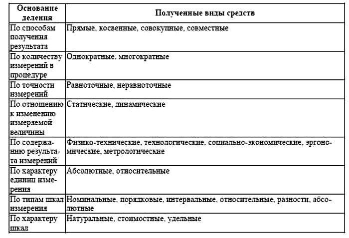Средства измерения классифицируются по различным признакам: по точности измерений, по числу измерений в серии, по отношению к изменению измеряемой величины, по назначению, по форме выражения результата измерений и др. По способам получения результата все виды измерений разделяются на классы: прямые, косвенные, совокупные и совместные измерения. «Прямое измерение свойств ИСТ – способ измерения, при котором результат получается непосредственно из опытных данных измерения свойств ИСТ». Так, например, программа диагностики входных документов на этапе их ввода в ЭВМ обнаружила в 100 документах 20 пропущенных оператором ввода значений показателей (реквизитов-оснований). «Косвенное измерение свойств ИСТ – это способ измерения, при котором искомая величина непосредственно не измеряется, а её значение определяется на основании известной зависимости между этой величиной и величинами, полученными в результате прямых измерений свойств ИСТ». Примером косвенных измерений может служить себестоимость обработки документа, полученной в результате анализа регрессионной зависимости себестоимости от независимых переменных, в частности, дефектов обработки. «Совокупное измерение свойств ИСТ – это способ измерения нескольких однородных величин в различных их сочетаниях, значения которых определяется решением системы соответствующих уравнений, отображающих свойства ИСТ».