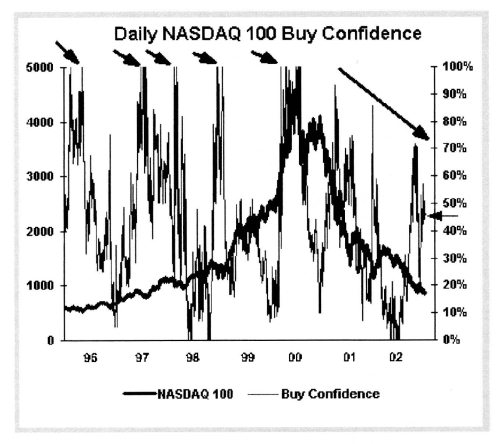 Рисунок 6-4. Индекс уверенности в покупке по NASDAQ-100 в 1995-2002 годах.