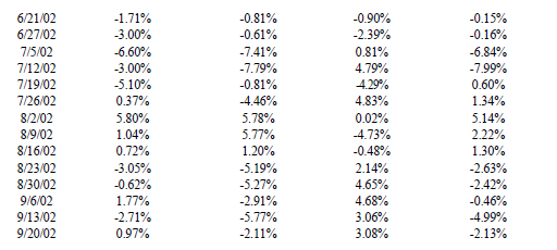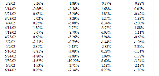 Таблица 6-1. Абсолютная еженедельная доходность с марта по сентябрь 2002 года.