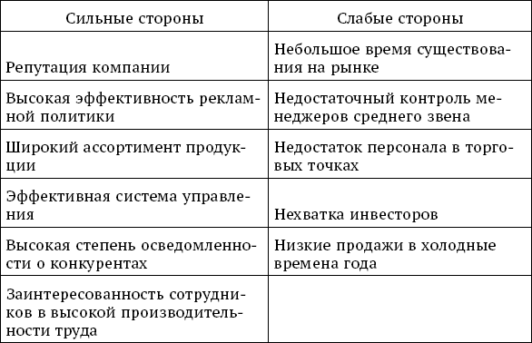 Рис. 20. Сильные и слабые стороны компании «Веселый турист»