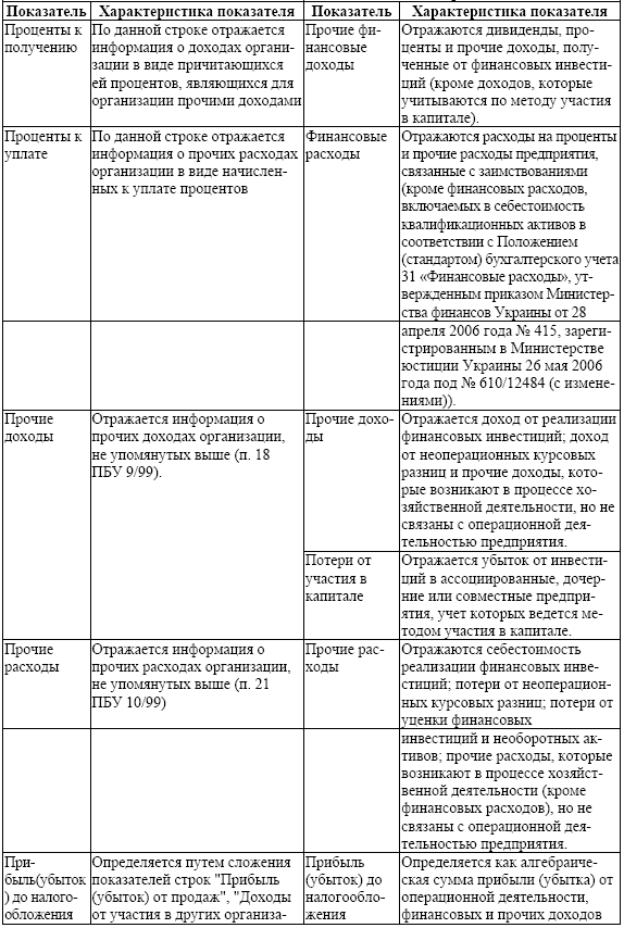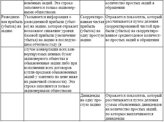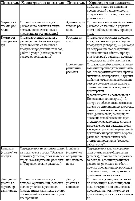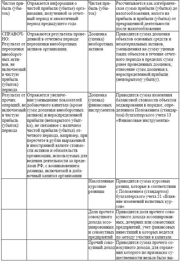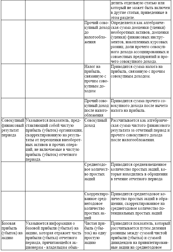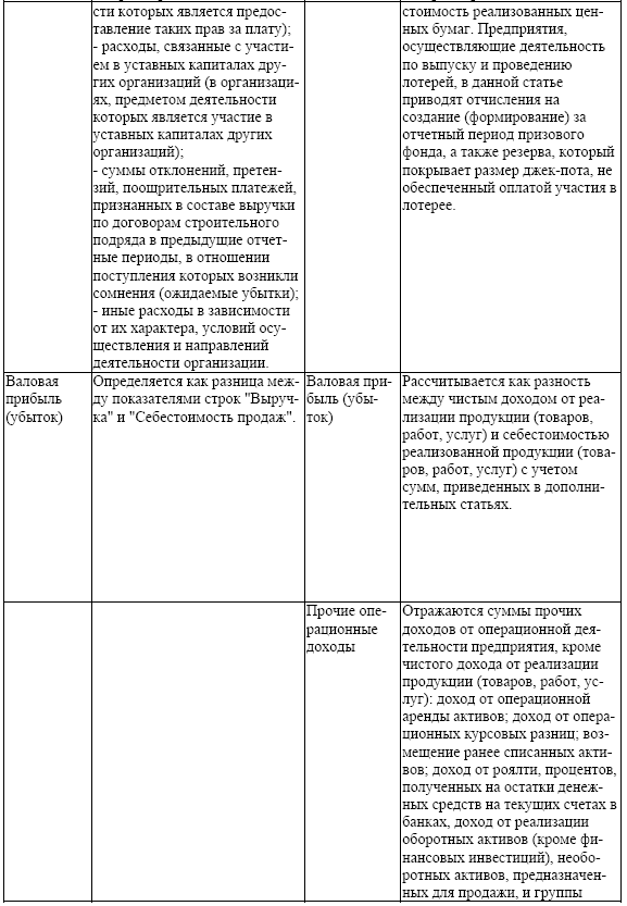Содержание статей отчета о финансовых результатах