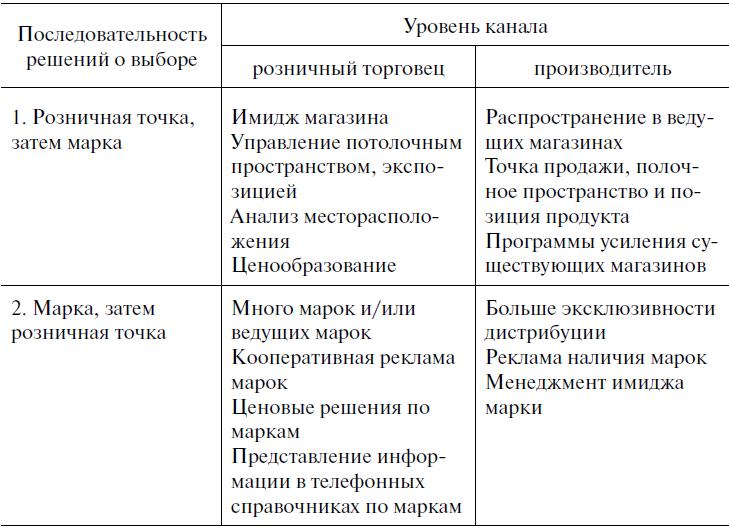 Каждый из вариантов решения о покупке определяет специфические акценты маркетинговой стратегии розничной точки и производителя (табл. 3.1).