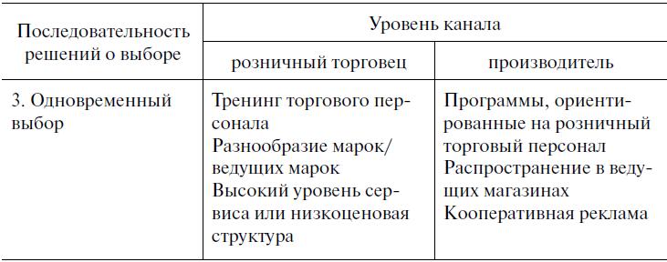 Таблица 3.1. Стратегии маркетинга, основанные на последовательности потребительских решений