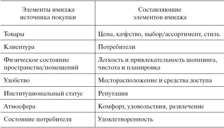 Таблица 3.2. Составляющие элементы имиджа источника покупки