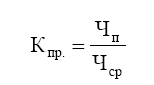 1) Коэффициент приема кадров (Кпр.) – отношение принятых работников (Чп) за анализируемый период к среднесписочной численности за тот же период (Чср.):