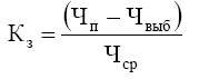 3) коэффициент замещения (Кз.) – отношение разности числа принятых и выбывших к среднесписочному числу работников: