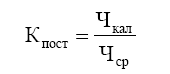 4) коэффициент постоянства кадров (Кпост) – отношение лиц, состоящих в списочном составе весь календарный год (Чкал), к среднесписочной численности: