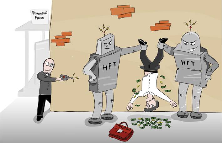 Количество посредников резко выросло, а количество конечных продавцов и покупателей нет. Конкуренция снизила доходность этого бизнеса – на те же деньги стало претендовать больше «охотников». Когда доходность посреднической деятельности снижается, возникает соблазн злоупотреблений. Перекупщики автомобилей, например, могут пойти на торговлю ворованными машинами, а создатели HFT-алгоритмов начали думать над тем, как отнимать деньги у конечных продавцов и покупателей. Появилось большое разнообразие алгоритмических стратегий и роботов – фронтранеры, охотники, иллюзионисты, флипперы. Они стали высокотехнологичными паразитами, которые вклиниваются между продавцом и покупателем, создавая им дополнительные издержки, при этом не принося никакой пользы.