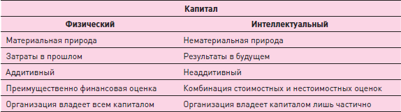 Таблица 2.1. Различия физического и интеллектуального капитала