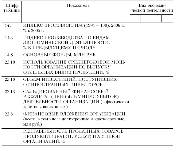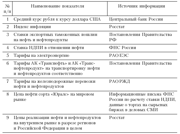 К экономическим показателям, характеризующим отрасль, относятся сведения из официальных источников государственных исполнительных органов. Состав таких показателей рассмотрим на примере нефтяной отрасли (табл. 7.3).