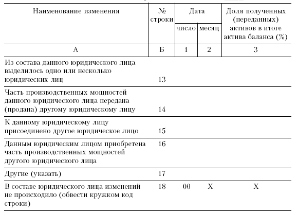 В разделе II «Сведения об изменениях юридического лица в_______________ году» (форма № 1-предприятие) отражаются изменения в организации в отчетном году (табл. 7.4).