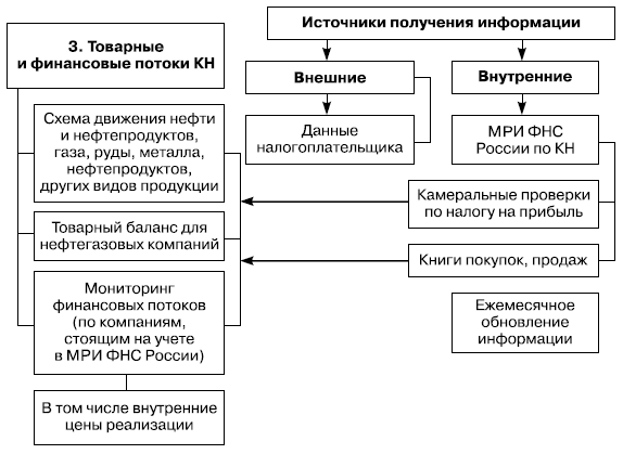 Особое значение имеет данный раздел ЭДН для вертикально интегрированных нефтяных компаний (ВИНК), ОАО «Газпром». Необходимость мониторинга товарно-финансовых потоков обусловлена тем, что величина создаваемой налоговой базы по основным налогам, уплачиваемым организациями в большинстве отраслей, в конечном итоге зависит от двух ключевых показателей: физических объемов реализации продукции и ценовых показателей. Поэтому в целях мониторинга и налогового контроля деятельности компаний возникает необходимость в контроле их товарных потоков в целях анализа объективности налоговой базы, заявленной налогоплательщиком по различным видам налогов.
