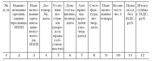 Как показано в табл. 7.6, основные документы, необходимые для построения товарного баланса и мониторинга цен реализации, следующие: