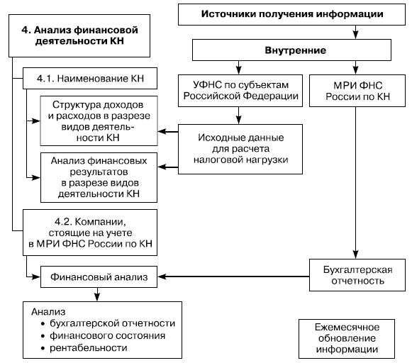 Необходимо отметить, что в настоящее время такая работа проводится межрегиональными инспекциями по крупнейшим налогоплательщикам федерального уровня. Однако подобная работа не регламентирована внутриведомственными нормативными актами, содержащими соответствующие методики, а также не установлены субъекты внутриведомственного управления, ответственные за сбор и обработку данной информации.