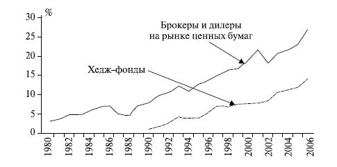 Рис. 11.2. Доля брокеров, дилеров и хедж-фондов по отношению к банковским активам