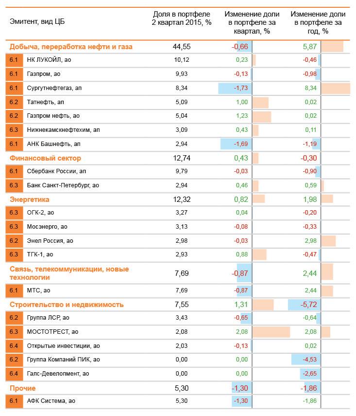 Данные об изменении долей активов в портфеле дают информацию об изменении инвестиционных приоритетов.