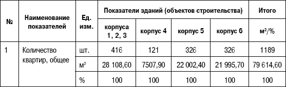 Таблица 6.6. Характеристика корпусов квартала «Жемчужная премьера»
